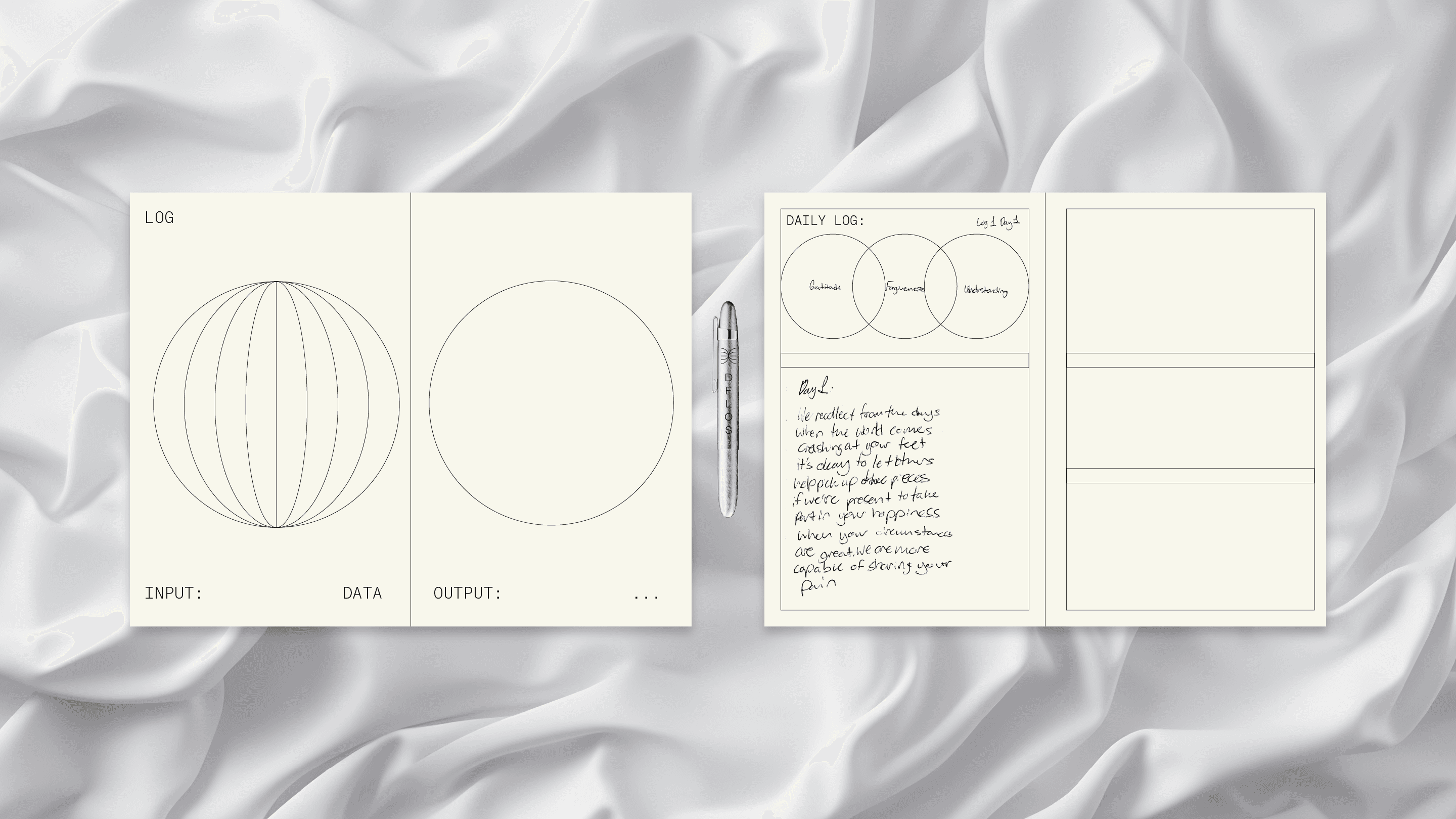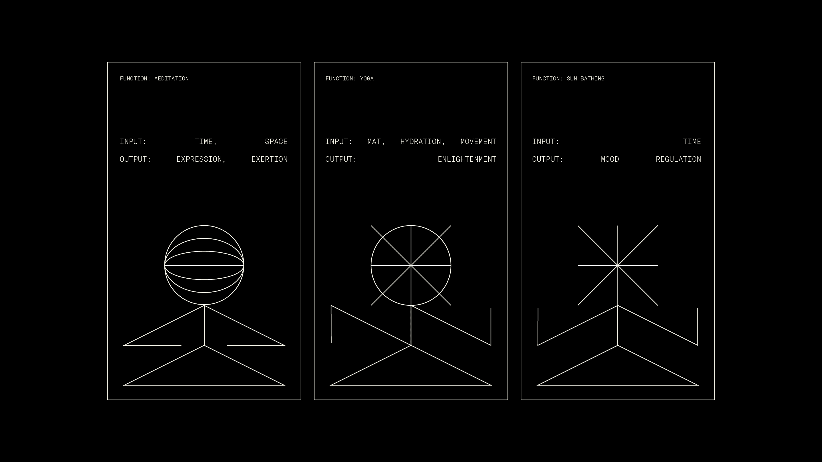 The hieroglyphic graphics paired with the terminal inspired type layouts creates a throughline of a measured approach bringing consistency to something that might feel alien at first.