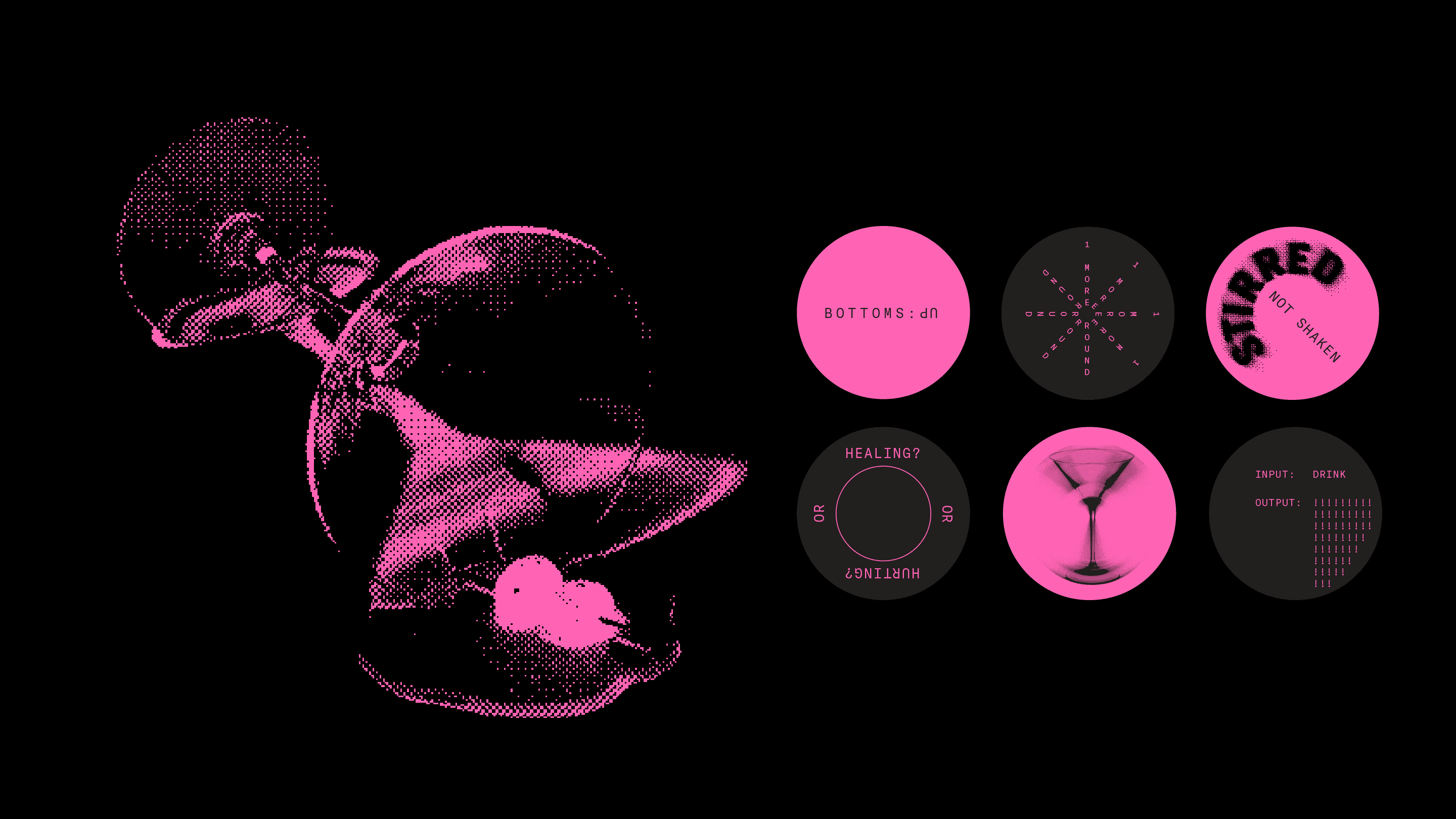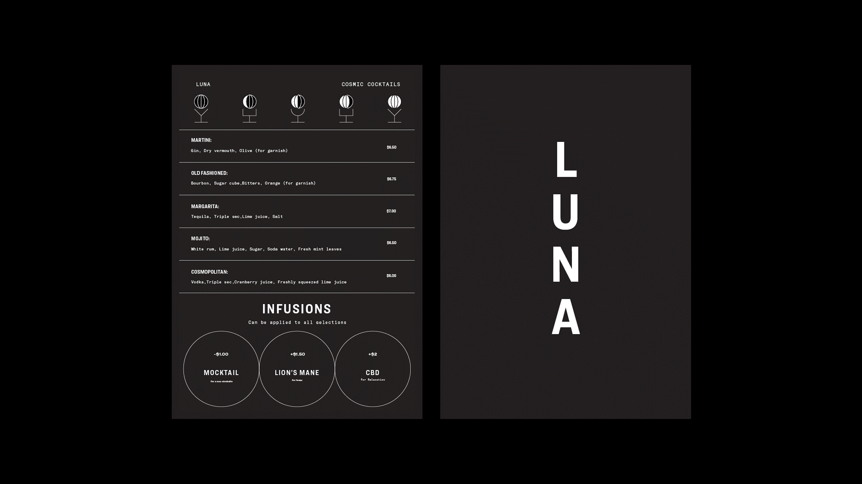 The bar, Luna, takes cues from UFO abductions. The design system gets taken for a literal spin with UV printing to create a new but harmonic secondary system.